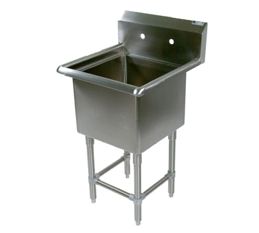Revamp operations with intelligent choices using the John Boos, 41PB24 Sink. This one-compartment sink is designed to enhance efficiency and functionality in commercial restaurant settings. With its 14300 stainless steel construction, it offers durability and easy maintenance, ensuring long-lasting performance. The sink features a 24" front-to-back and 12" deep compartment, providing ample space for washing and rinsing dishes, utensils, and cookware. The 10" high boxed backsplash with a 45° top and 2" return prevents water splashes, keeping the surrounding area clean and dry. The sink also includes a set of splash mount faucet holes with 8" centers, allowing for easy installation of faucets. The adjustable front and side bracing, along with stainless steel legs and bullet feet, provide stability and flexibility. NSF and CSA-Sanitation certified, this sink meets the highest standards of hygiene and safety. Upgrade your restaurant's kitchen with the John Boos, 41PB24 Sink for a seamless and efficient dishwashing experience.
