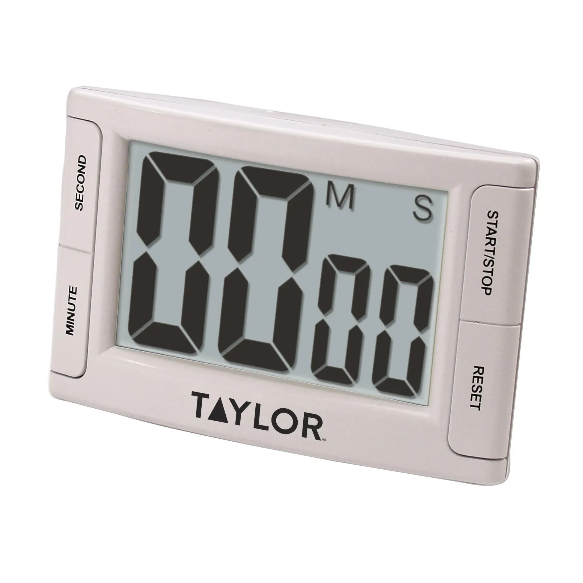 Optimize operations with the Taylor Precision, 5896, Timer, Electronic. This jumbo readout digital timer is designed to enhance efficiency in commercial restaurant settings. With its 2.5" x 1.6" LCD readout, you can easily monitor and track cooking times, ensuring precise and consistent results. The timer can count up to 99 minutes and 59 seconds, accommodating a wide range of cooking processes. Its jumbo readout allows for quick and effortless visibility, even from a distance. The memory recall function enables you to review previous timing sessions, making it convenient for repetitive tasks. The timer can be positioned using its magnetic backing or stand, providing flexibility in placement. Each unit comes with a LR44 battery, ensuring immediate usability.
