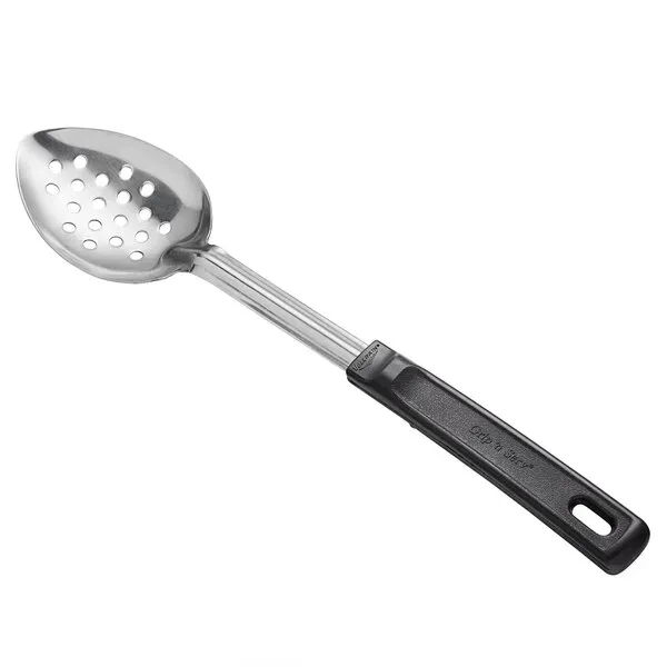 The stainless steel perforated basting spoon by Vollrath is a perfect addition to any busy kitchen for basting, draining, stirring and more. The long handle helps you maintain a safe distance from food items and is heat-resistant up to 230°F, making this spoon ideal for hot foods. The handle also features a thumb notch that offers a comfortable grip and prevents the spoon from slipping into pots and pans.