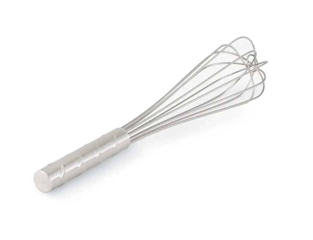 Blend your signature sauces to smooth perfection with the French whip by Vollrath. Featuring strong, thick stainless steel wires that are reinforced by a center wire, this French whip is sure to maintain its shape. The elongated design is ideal for deep vessels and straight-sided pans, making this whip the perfect choice for large batches and heavier food products. Integral nubs on the one-piece handle ensure a safe, comfortable grip and excellent control.
