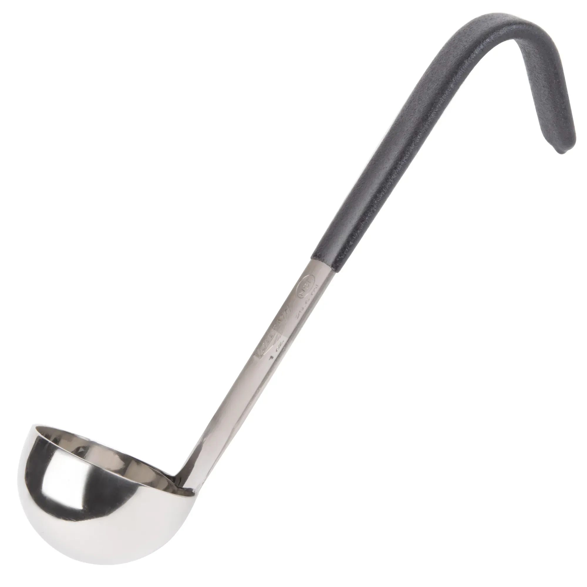 Designed to serve a wide range of items, including sauces, soups, drinks and more, the one-piece ladle by Vollrath is up for any task. Made of heavy-duty stainless steel, this durable ladle will last for years. The one-piece design is easy to clean, and the insulated Kool-Touch handle is heat-resistant up to 180°F and color-safe up to 225°F. It creates a comfortable, cool grip and features all-natural antimicrobial properties that guard against harmful bacteria. This ladle promises accurate portions, with precise bowl dimensions and the capacity stamped clearly on the handle for quick identification. The short handle is ideal for small or low-clearance serving areas, and the beautiful stainless steel adds an elegant touch to any operation.