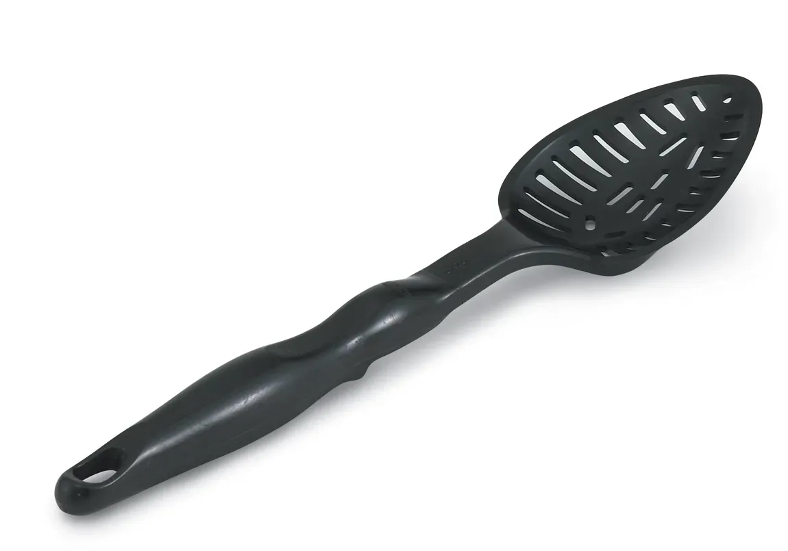Designed for busy foodservice operations, the slotted nylon spoon by Vollrath is perfect for stirring, straining, serving and more. The strong, one-piece nylon construction doesn’t scratch or mar surfaces, is heat-resistant up to 475°F and features a smooth design that eliminates crevices that trap bacteria. The handle offers a comfortable ergonomic grip and features a stopper notch that prevents the utensil from sliding into your pan. This durable nylon turner is ideal for nonstick cookware.