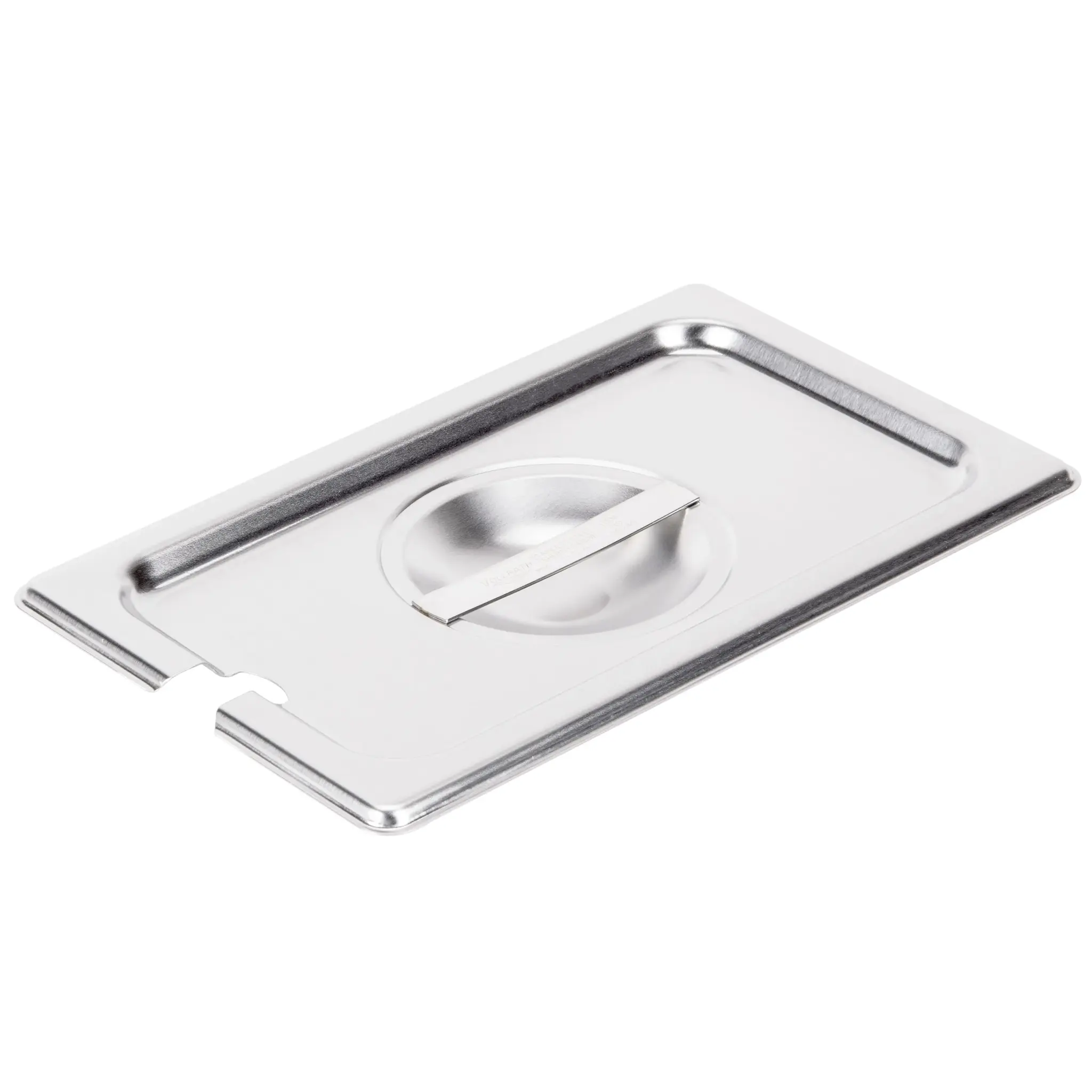 Made of durable 22-gauge 300-Series stainless steel, this solid steam pan cover features an open slot to keep a utensil conveniently handy and a sturdy center flat handle that’s easy to lift. It keeps food hot or cold and prevents contamination. The bright finish offers elegant presentation.