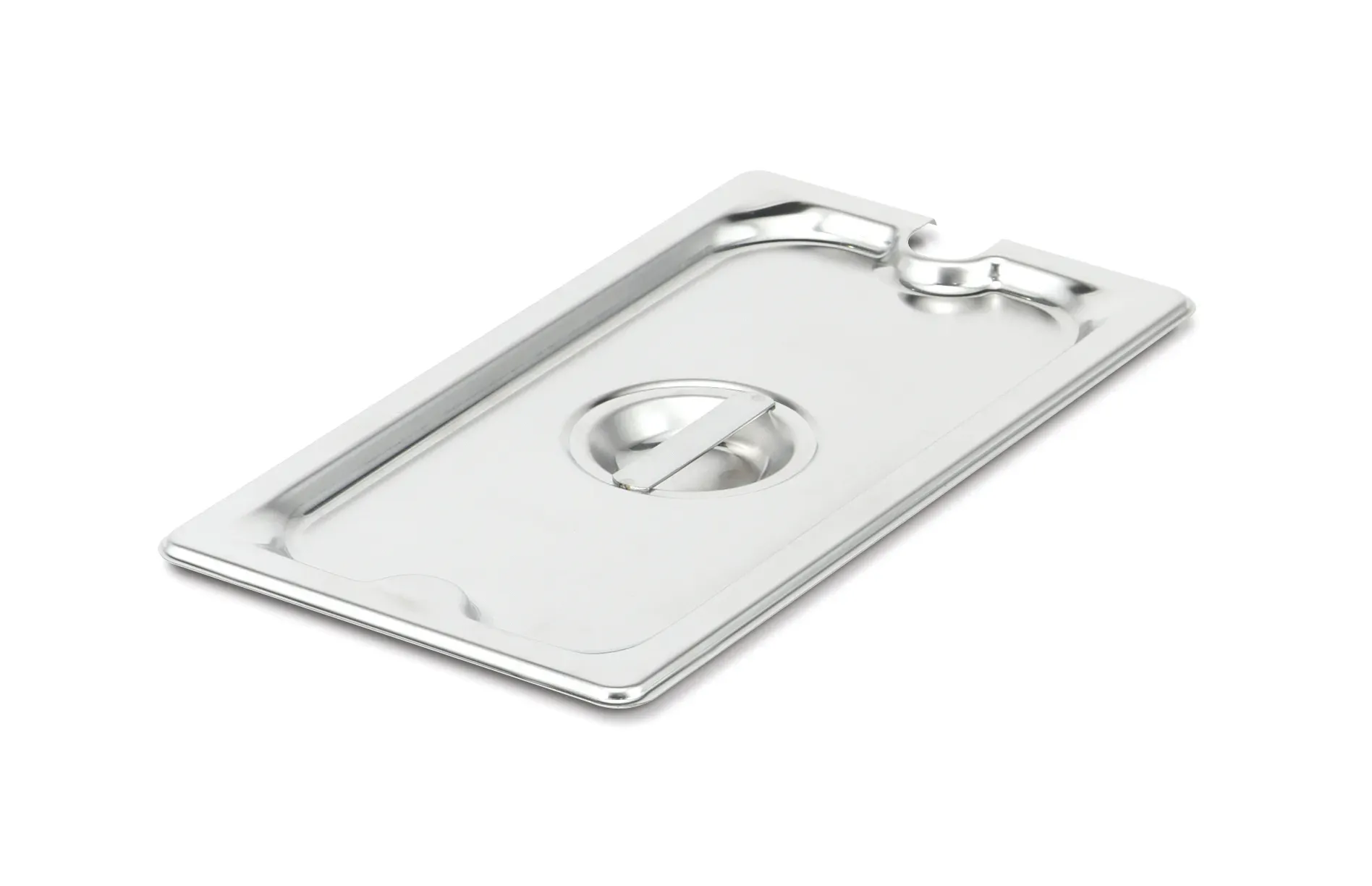 This sturdy cover by Vollrath fits on your Super Pan 3 steam table pan securely. The stainless steel construction is durable and long-lasting, while reinforced edges provide additional strength. The flat center handle offers a comfortable grip and ensures easy removal when needed, and a slot keeps your serving utensil handy, making this cover an excellent addition to your steam table setup.